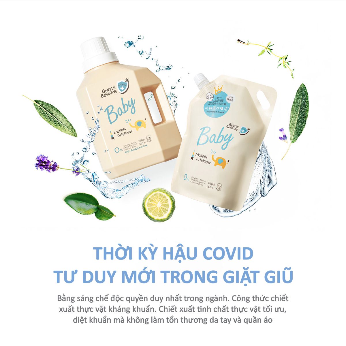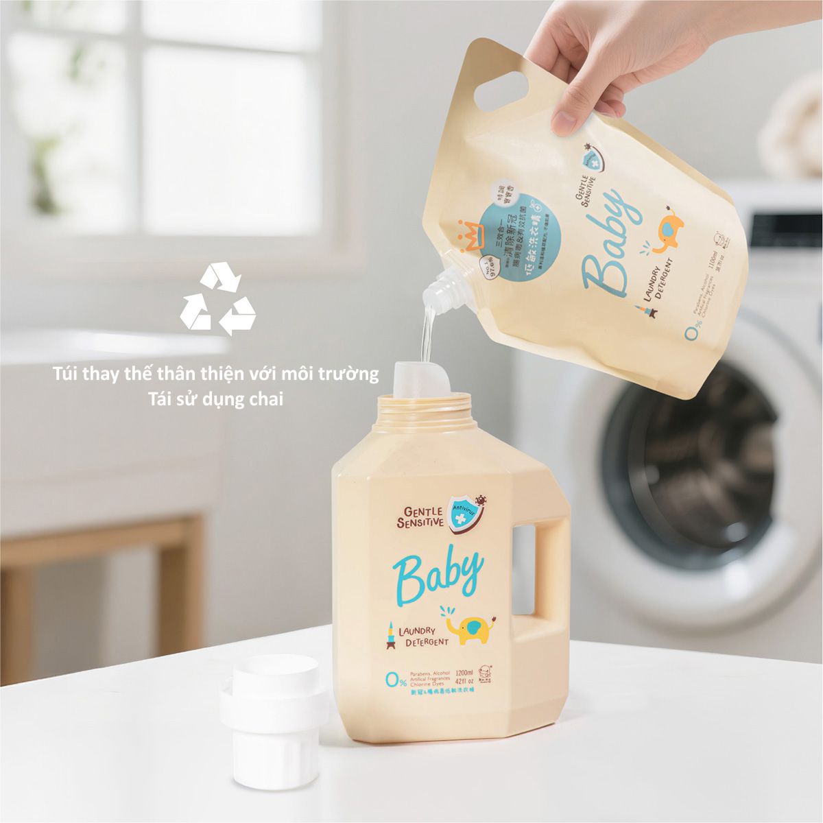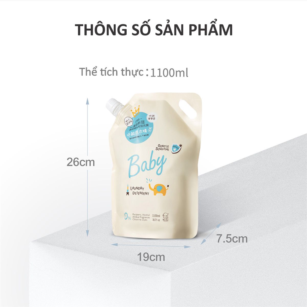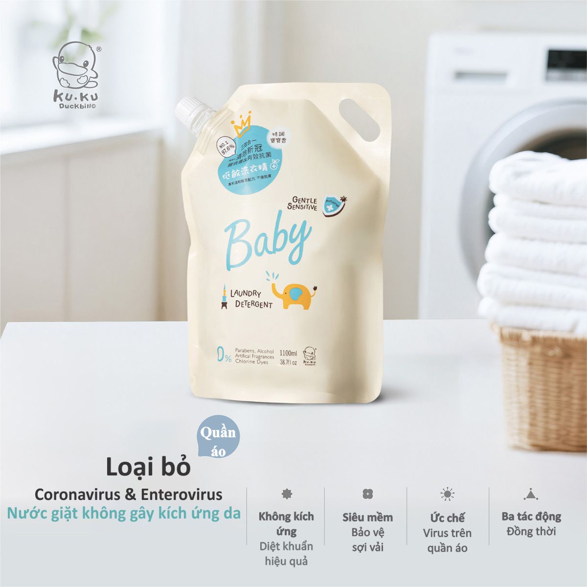 - NƯỚC GIẶT QUẦN ÁO EM BÉ KHÁNG KHUẨN CHO DA NHẠY CẢM KU1165 - GENTLE SENSITIVE - DẠNG TÚI 1100ML - HƯƠNG BABY (CAM BERGAMOT)