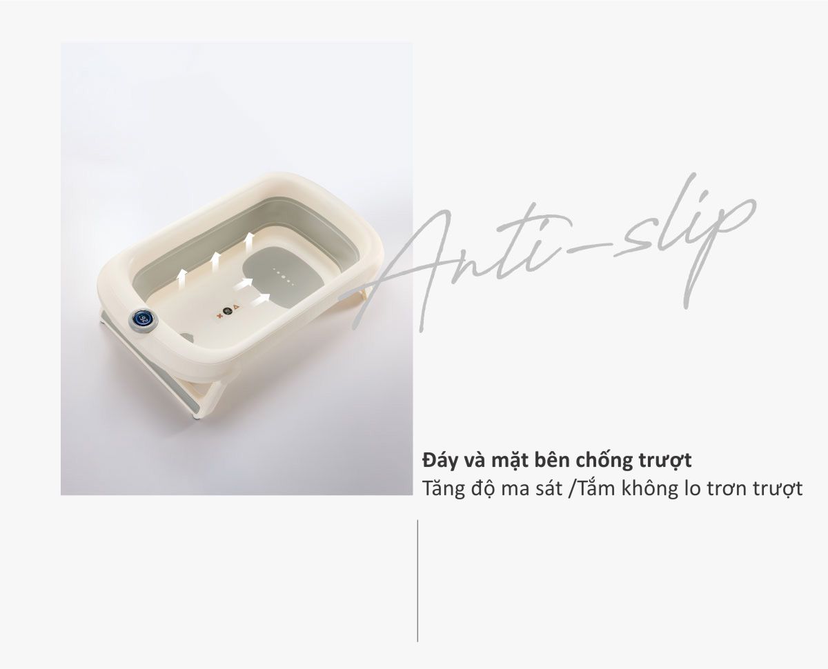 - Thiết kế chống trượt: Đáy và mặt bên trong thau chống trượt, tăng độ ma sát, bước vào không lo trơn trượt. Ngoài ra còn trang bị miếng đệm chống trượt TPE ở 4 chân đỡ, không lo trơn trượt trên bề mặt ẩm ướt.