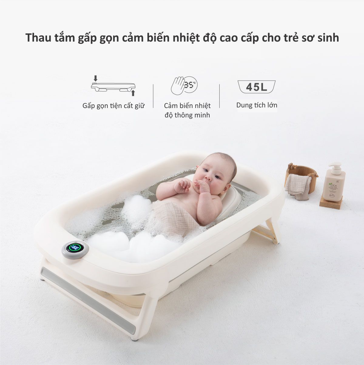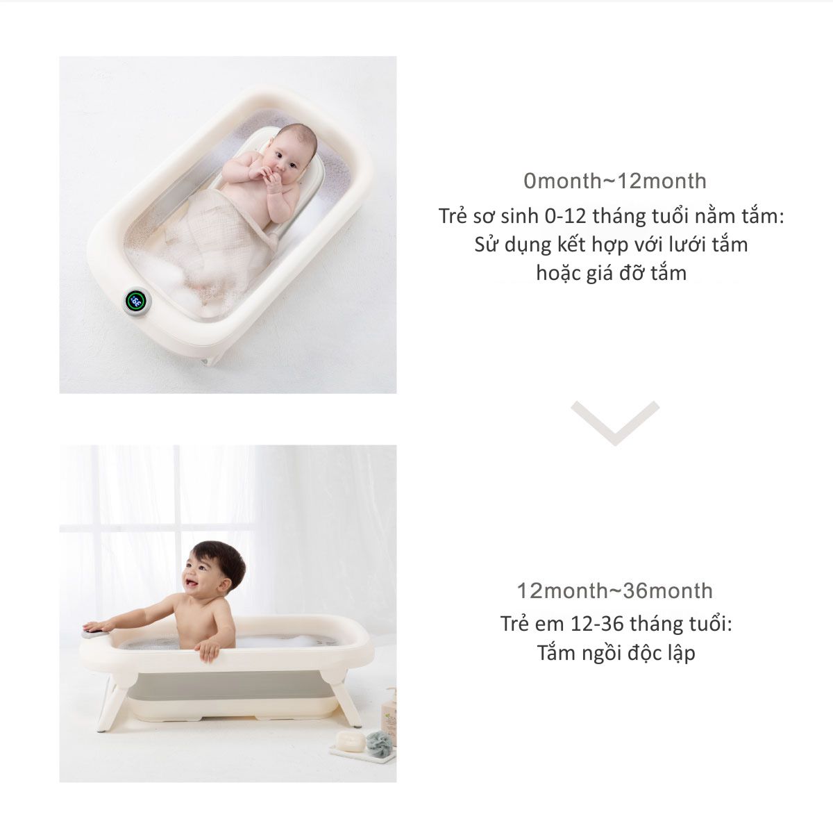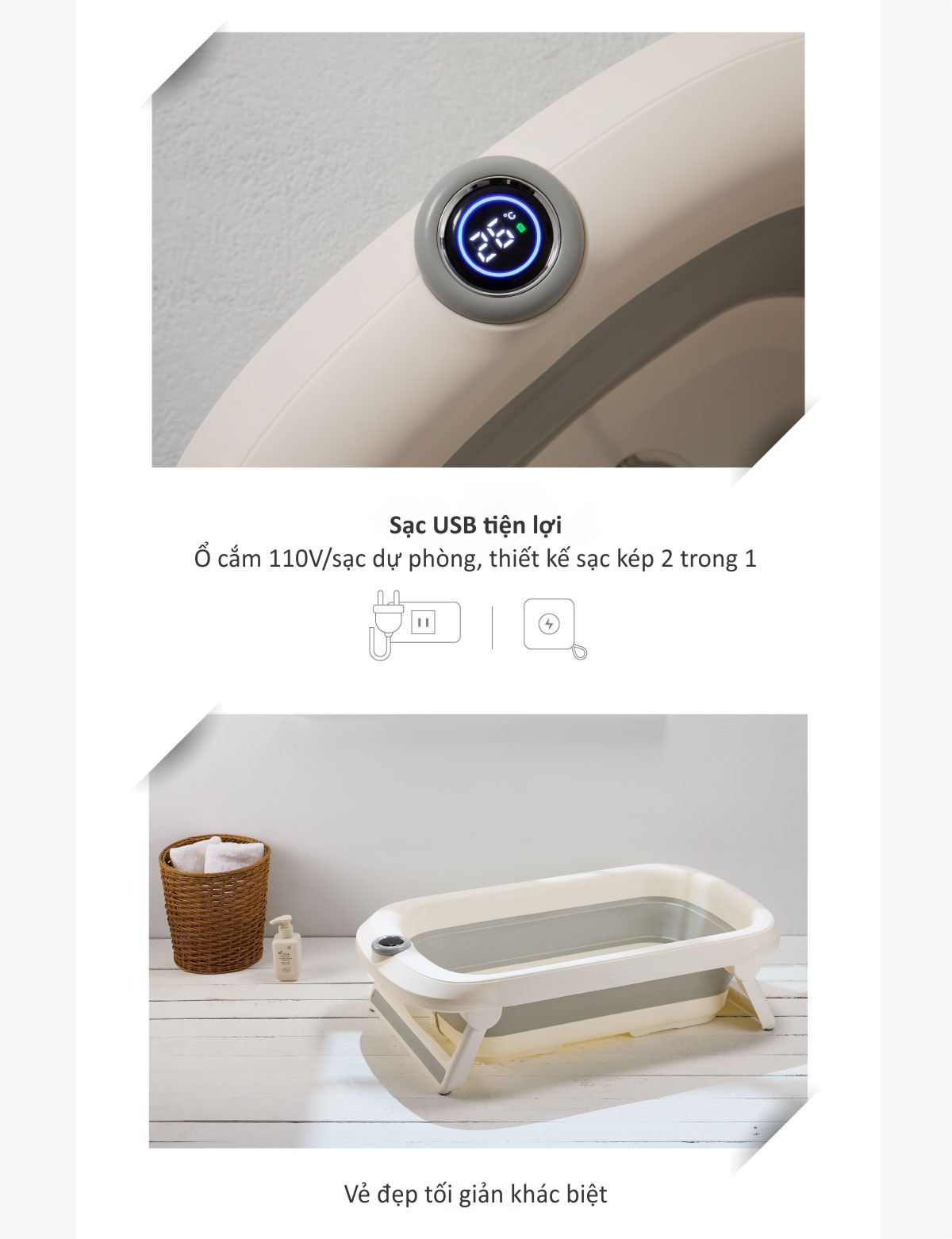 - Theo dõi nhiệt độ thời gian thực: Được trang bị cảm biến nhiệt độ tích hợp theo thời gian thực để giúp bạn đảm bảo nhiệt độ nước an toàn và thoải mái cho bé, tránh bị bỏng hoặc nước quá lạnh.