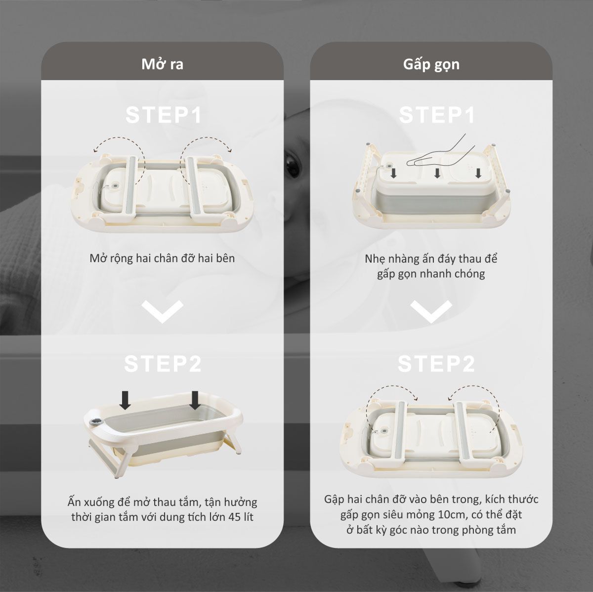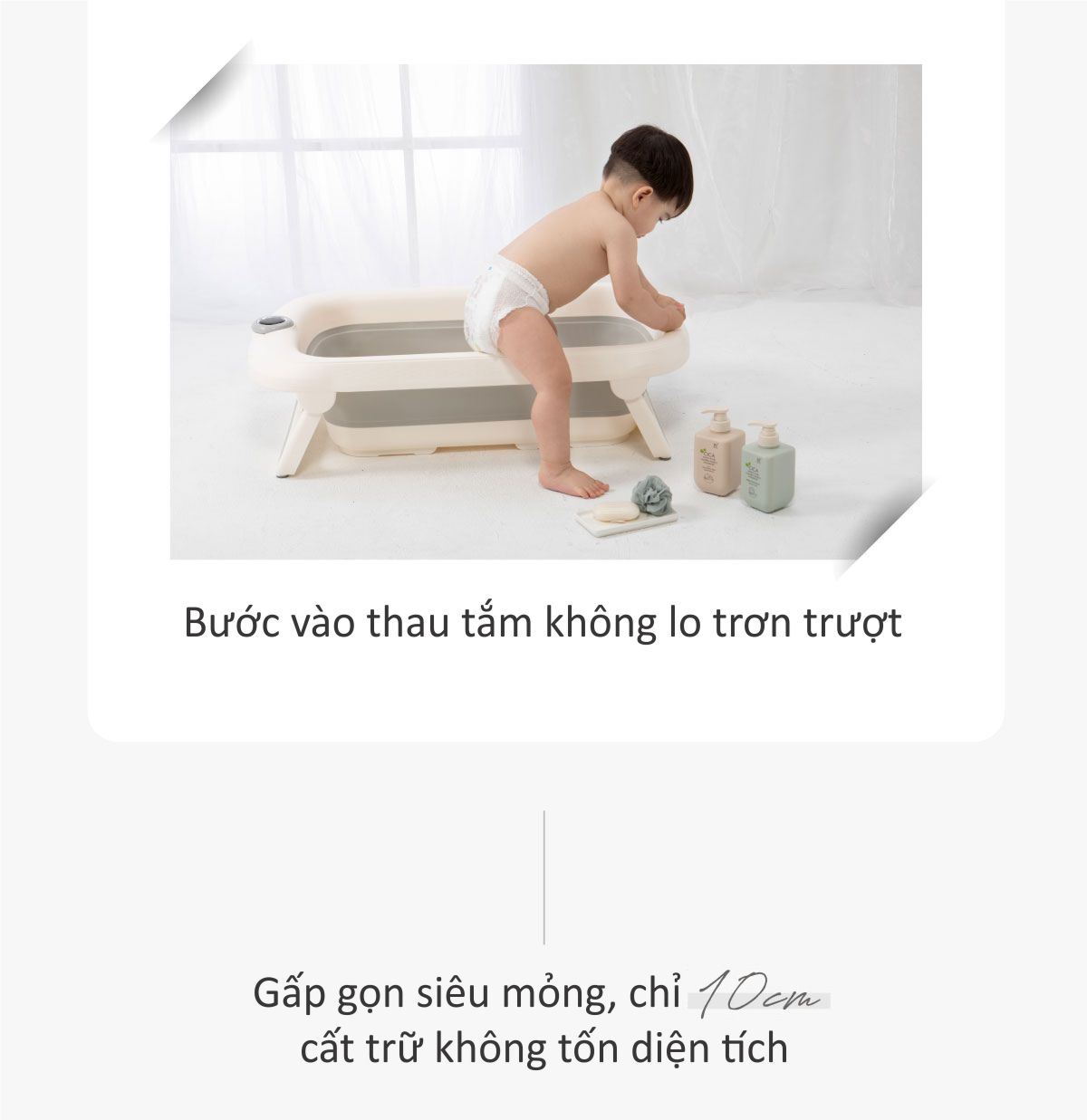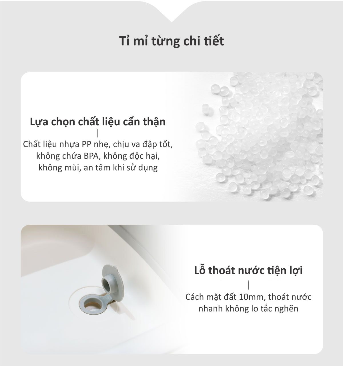 - Vẻ đẹp tối giản: Thiết kế thau tắm thẩm mỹ, bo tròn không góc cạnh, không để lại nhựa thừa làm xước bé.