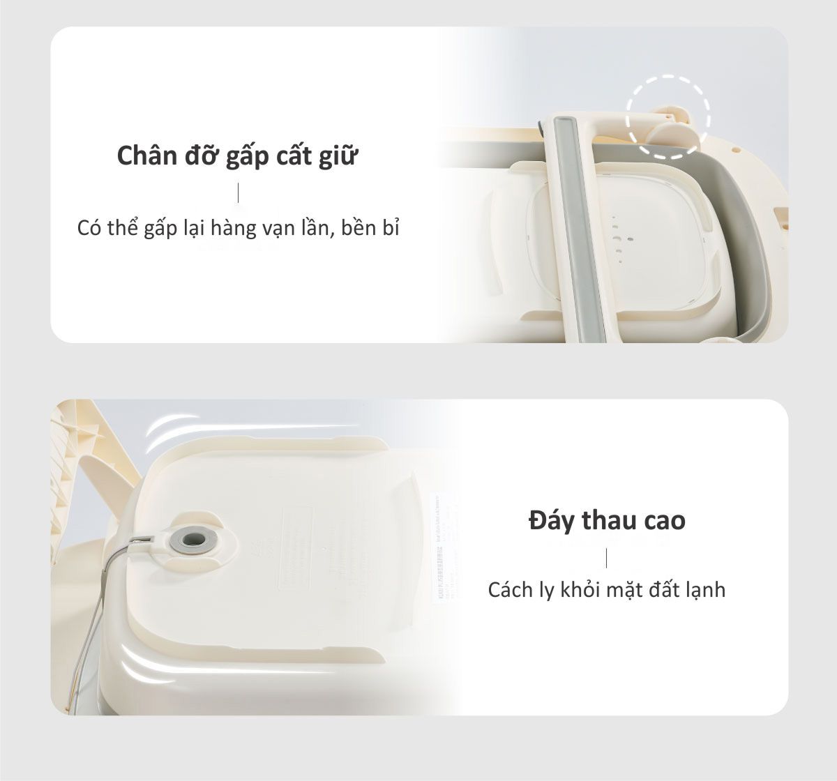 - Dễ dàng thoát nước: trang bị một van thoát nước với nút cao su thân thiện với người dùng để thoát nước dễ dàng và đảm bảo khô ráo vệ sinh sau khi bé sử dụng.